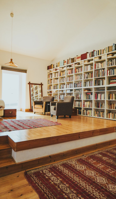 O estúdio reflecte um equilíbrio entre simplicidade e funcionalidade. Sem excessos, cada detalhe foi pensado para proporcionar um ambiente acolhedor e que favoreça a contemplação e o descanso. A sobriedade do mobiliário e a presença dos livros criam uma atmosfera que homenageia o escritor que lhe dá nome.